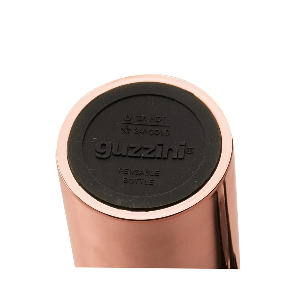Thermal travel bottle from Guzzinifor carrying and maintaining the temperature of your beverages: water, coffee, tea, infusions, milk, fruit juices and acid and fizzy drinks. In polished copper finish stainless steel.
