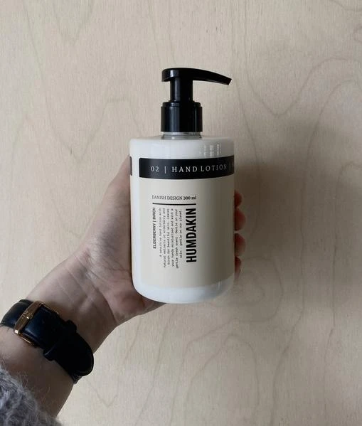 HUMDAKIN sensitive hand lotion with natural extracts of elderberry and birch for beautiful skin. The allergy friendly scent and effective formula is perfect if you have sensitive skin and dry skin. Leaves your hands moisturised and with a gentle fresh scent. Gentle on your skin – gentle on our planet. This unique and softening hand lotion contains natural extracts of elderberry and birch. Elderberry is known for its caring and anti-ageing properties, while birch contains anti-irritant and antiseptic properties and is known for its soothing and curative effect. This hand lotion is enriched with macadamia oil, shea butter and apricot oil, which help heal, moisturise and protect your skin. The HUMDAKIN hand lotion with elderberry and birch effectively absorbs into your skin and leaves your hands moisturised and silky smooth. Use the lotion after having washed your hands with the nurturing 02 hand soap for clean and moisturised hands. HUMDAKIN’s liquid products are free of parabens, dyes, essential oils, chemical perfumes, endocrine disrupting substances and carcinogens. HUMDAKIN’s products contain allergy friendly perfume and only mild preservatives. HUMDAKIN’s liquid products are dermatologically tested. The packaging is made of reusable plastic containing 300ml of product.
